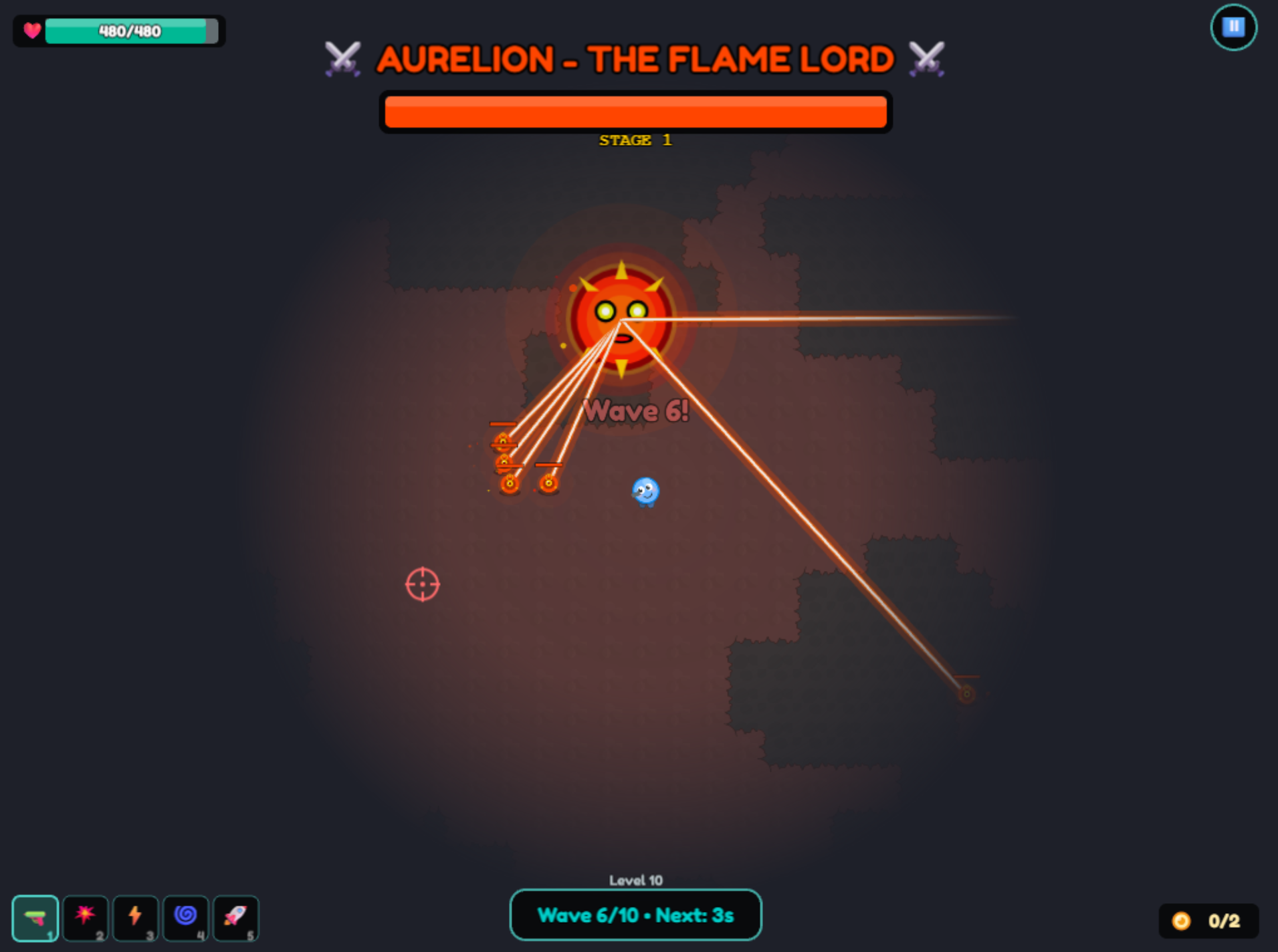 Fight through increasingly brutal waves. Face unique bosses with deadly attack patterns. Upgrade your abilities. How far can you go?